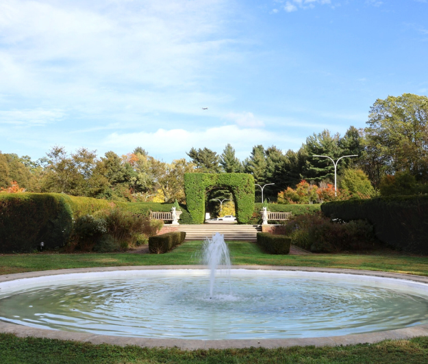 Coffin’s use of rectangles, circles, and arches mirrors that of the symmetrical design of the mansion. At the main axial crossing, she placed a circular reflecting pool with a central fountain jet, which not only reflected surrounding trees and passing clouds but also provided a strong focal point for the entire garden.