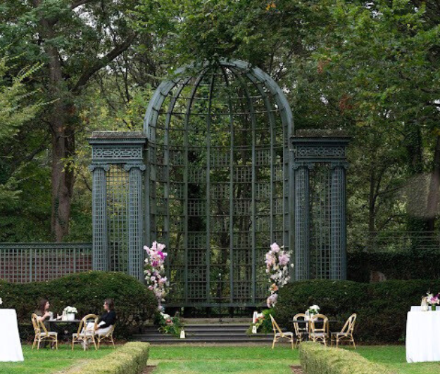 The garden is located just to the west of the main parking lot and is accessed from there through a privet arch with high hedges on either side. Marian Cruger Coffin designed this garden for the Fricks in the 1920s, and it is considered one of her finest designs.