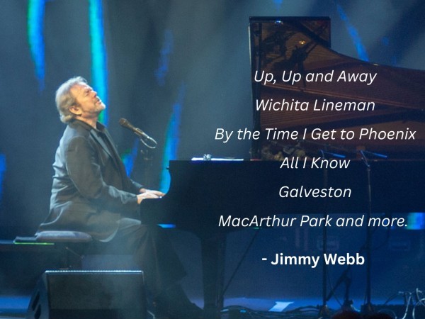 Webb is a multiple Grammy award-winning American songwriter, composer, and performer known worldwide as a master of his trade. Since his first platinum record, “The Worst That Could Happen,” Webb has had numerous hits, including “Up, Up and Away,” “Wichita Lineman,” “By the Time I Get to Phoenix,” “All I Know,” “Galveston,” “MacArthur Park,” and more.